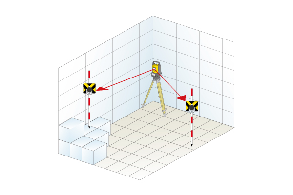 可視光のレーザーポイントを連続で照射可能。室内工事等の至近距離の視準において、おおまかな視準方向を決定する際に大変便利です。