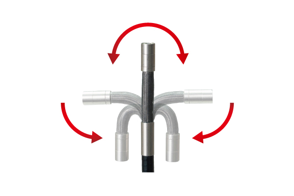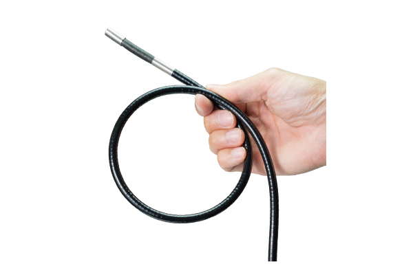 ハンドルを回すと左右180°までケーブル先端を自由に可動する事ができます。 一方向への検査・点検しかできなかったのが、ケーブル先端を自由に可動させる事によって、様々な箇所を検査・点検する事ができます。 (耐摩耗性が高いタングステンメッシュを採用)