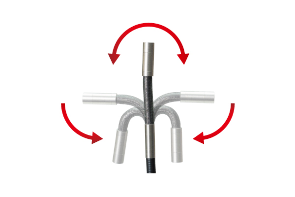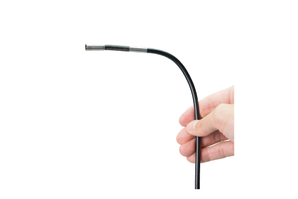 ハンドルを回すと左右180°までケーブル先端を自由に可動する事ができます。 一方向への検査・点検しかできなかったのが、ケーブル先端を自由に可動させる事によって、様々な箇所を検査・点検する事ができます。 (耐摩耗性が高いタングステンメッシュを採用)