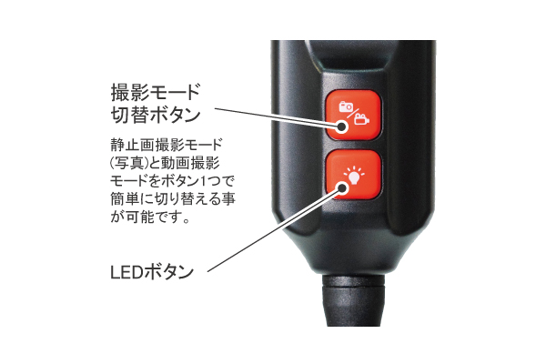 先端金属カバーを取り外し、標準付属の先端側視ミラーを取り付けて使用する事で、可動スペースが確保できない狭い配管などでもレンズ側面を見る事ができます。 (先端側視ミラー装着時の視野方向は90°です。)