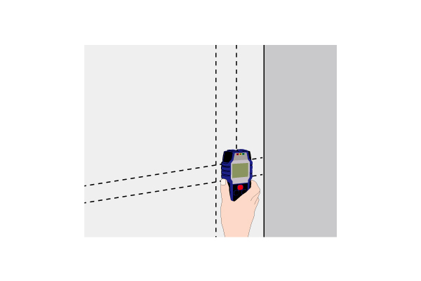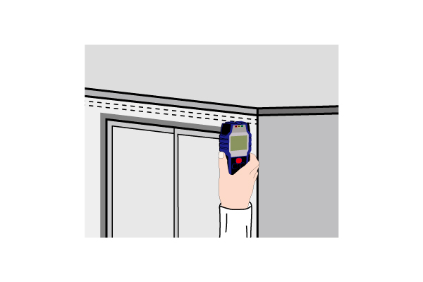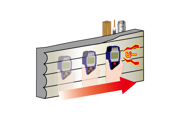 壁にあてて左右にスライドさせるだけで壁内の金属や木材を探知できます。