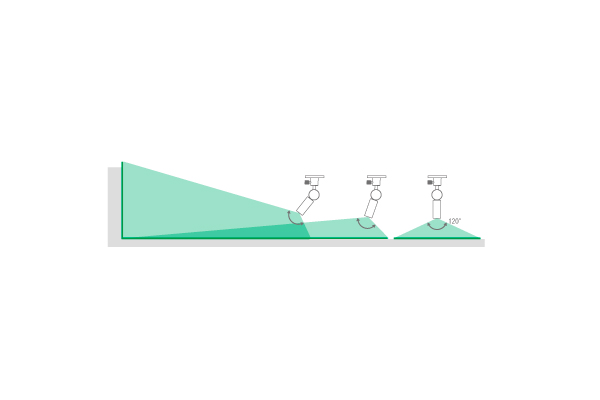 照射角120°の高輝度レーザーを搭載していますが、本機と対象物との高さや角度でレーザーの線長、線幅及び、 明るさは変わります。