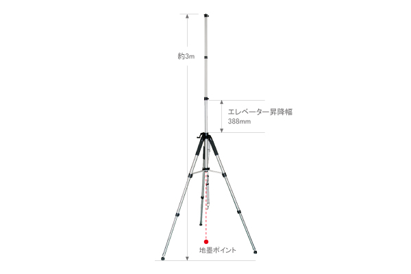 3方向スタビライザーはロックネジ付で三脚の開き具合を現場に合わせて調節できます。